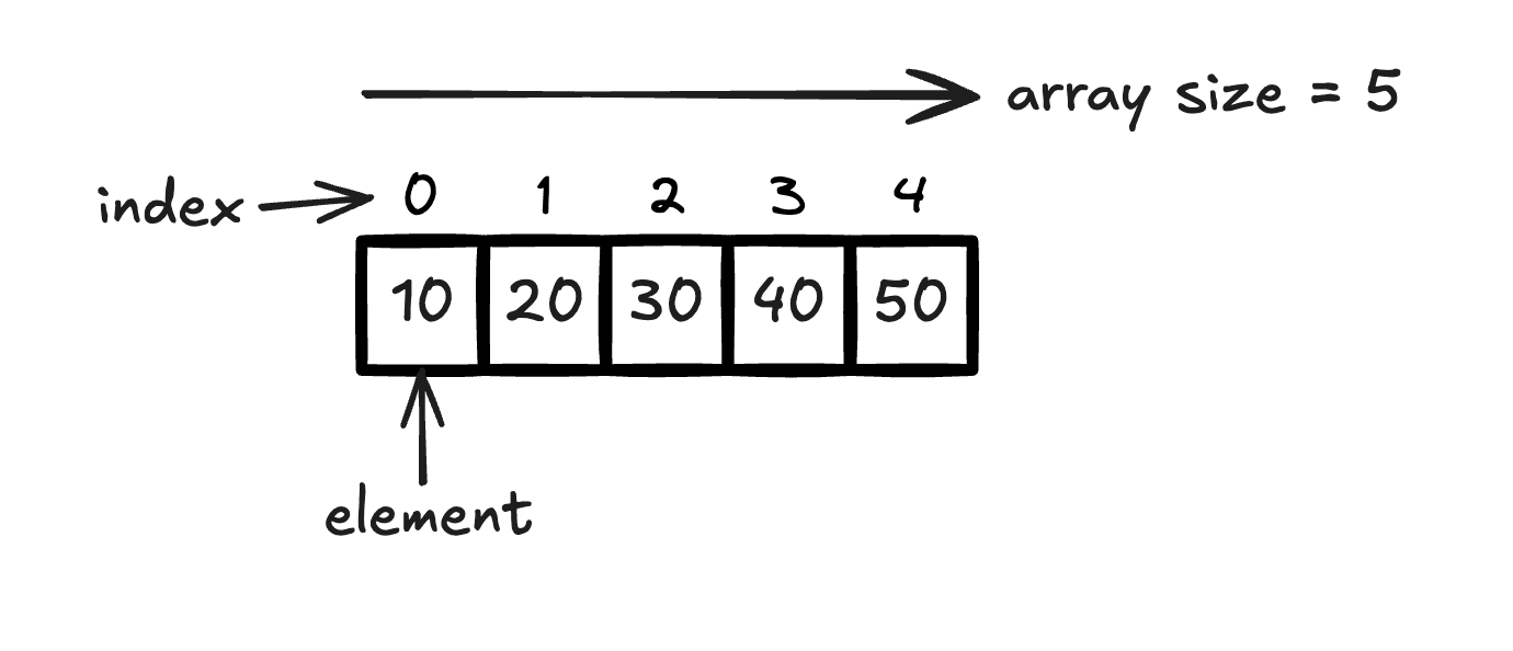 An array is one of the simplest and most commonly used data structures in programming. I like to think of it as a collection of items (like numbers or strings) stored in a fixed-size container. What makes arrays special is that all the elements are stored in a contiguous block of memory. This means that all the elements are laid out side by side in memory, making it easy and fast to access any element using its index.